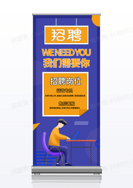 简约深蓝色扁平化风格招聘我们需要你校园招聘展架校园招聘易拉宝