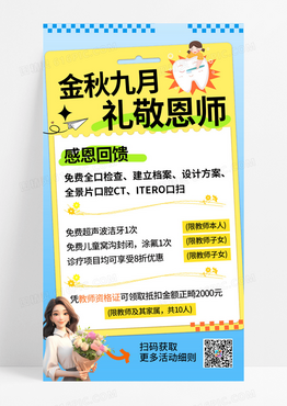 蓝色渐变3d教师节促销口腔检查宣传海报