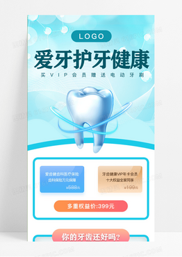 蓝绿色关爱牙齿健康买VIP会员赠送电动牙刷口腔