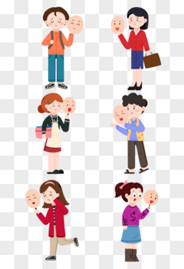 一组卡通扁平风面具人抑郁症套图系列五元素