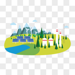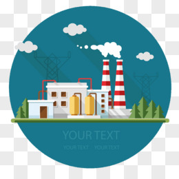 手绘卡通工厂烟囱排放废气场景免抠素材