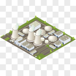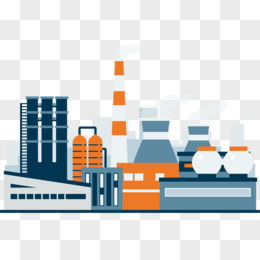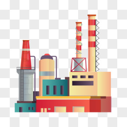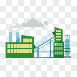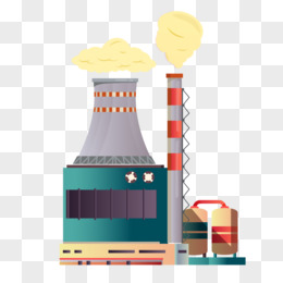 手绘卡通工厂烟囱排放废气场景免抠素材