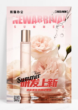 粉色插画香水研发上新宣传海报