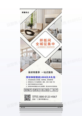白色简约大气风样板间全城征集中装修展架装修套餐宣传单