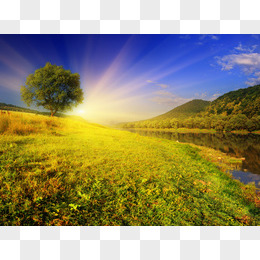 太阳青山绿水矢量