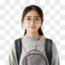 AI真人人像背书包戴眼镜的女高中生免抠元素素