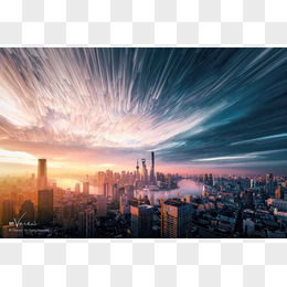 灰色天空阳光城市海水