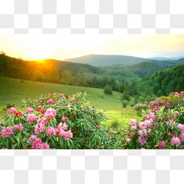 粉色花朵山峰阳光