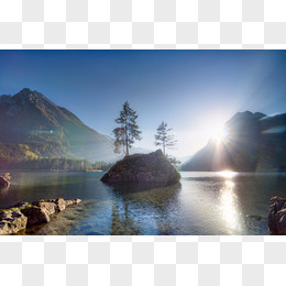 蓝天阳光山峰海面