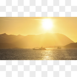 阳光山峰大海船只