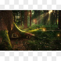 阳光透进神秘的森林