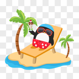 手绘卡通沙滩上晒日光浴的男士免抠素材