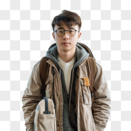 AI真人人像背书包戴眼镜的男大学生免抠元素