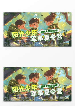 时尚绿色卡通风格阳光少年军事夏令营展板夏令营展板夏令营夏天