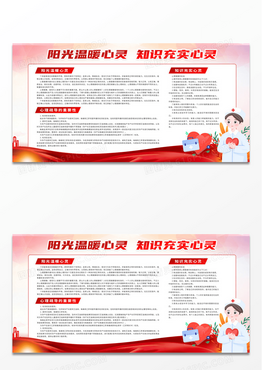 简约红色阳光温暖心灵知识充实心灵心理宣传栏展板