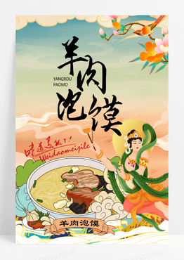 国潮敦煌风格羊肉泡馍美食宣传海报