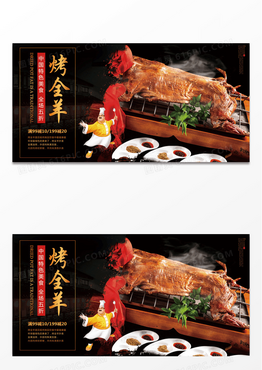 黑色中式烤全羊餐饮美食烧烤背景海报