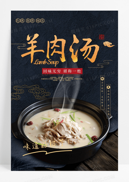一组国潮风手绘小吃美食合集之羊肉汤素材