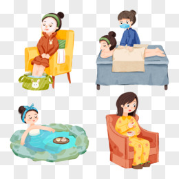 一组卡通漫画涂鸦风养生休闲活动免抠套图之拉伸元素