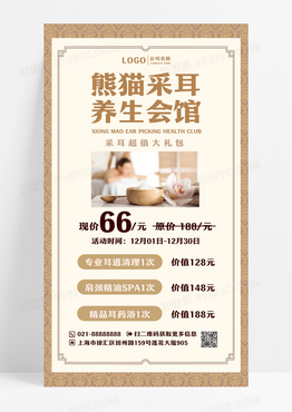 采耳养生会馆足疗养生价目表按摩养生理疗项目手机海报设计养生宣传海报