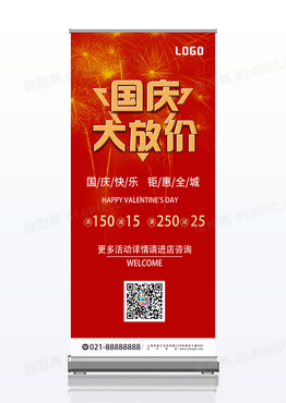 红色烟花国庆新中国成立72周年国庆大放价国庆展架国庆节国庆展架