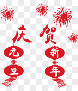 庆贺新年元旦烟花灯笼