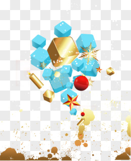矢量立体方块金色烟花蓝色盒子