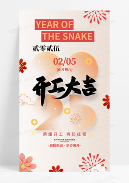 简约橙色烟火爆竹开门红2025开工大吉海报