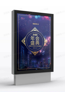 蓝色炫光2023年会盛典企业年会指引牌
