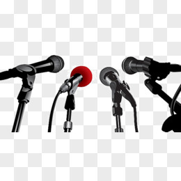 卡通木制演讲台和一排麦克风免抠元素