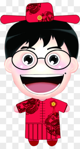 红色中式衣服眼镜男子持春联