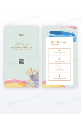 大气彩色颜料笔刷少儿美术培训竖版名片设计