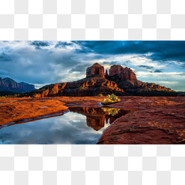 红色岩石蓝天白云