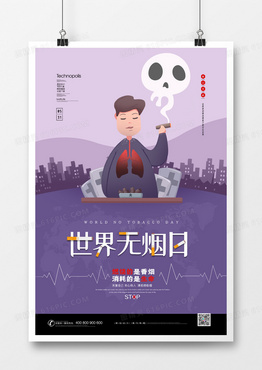 卡通手绘创意吸烟伤肺戒烟图标元素