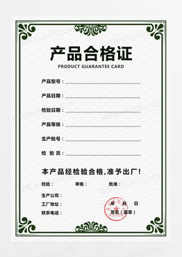大气产品合格证蓝色企业风格严肃端正合格证证书