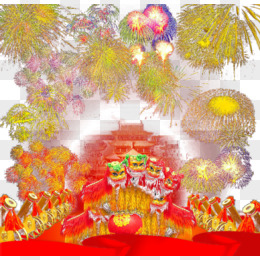 热闹烟火舞狮