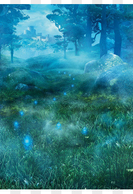 夜晚树林蓝色烟雾星光城堡