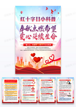 红色简约奉献点燃希望爱心延续生命世界红十字日海报宣传