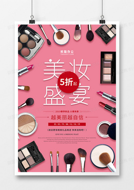 红色简约风美妆盛宴海报