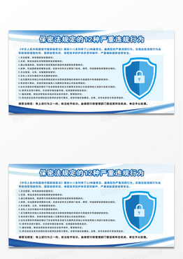 蓝色简约保密法规定的十二种严重违规行为保密制度保密展板设计