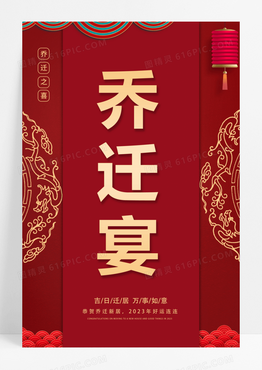 红色创意立体字乔迁宴乔迁庆典宣传海报设计乔迁海报