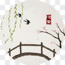 手绘国潮风春天微景观素材