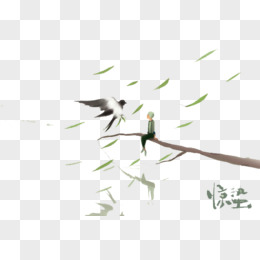 手绘春天竹林飞鸟免抠元素