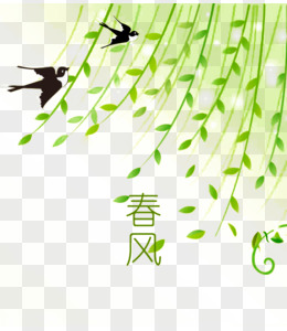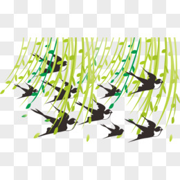手绘燕子和柳叶免抠元素