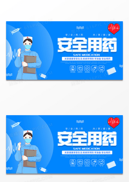 蓝色卡通简约安全用药医院海报展板药店海报设计