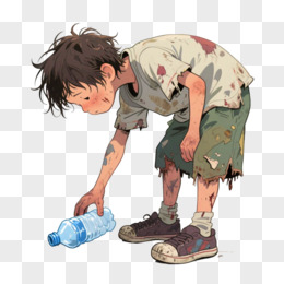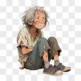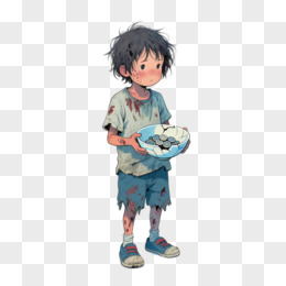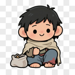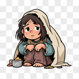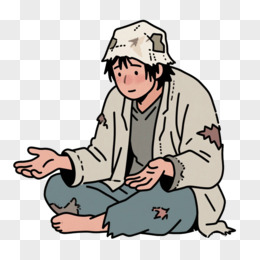 手绘卡通风格乞丐要饭的叫花子穷鬼乞讨免抠元素