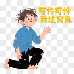 手绘卡通穷到要饭讨饭搞笑表情包元素