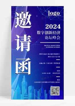 蓝色科技感2024数字论坛创新峰会邀请涵UI手机海报手机ui