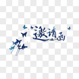 蓝色艺术字邀请函