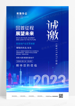 蓝色大气商务城市诚邀2023企业年会邀请函海报